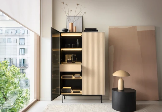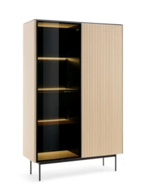 Szklana część z półkami uzupełniona jest eleganckim oświetleniem LED, które